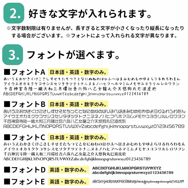 ●全角100文字(半角200文字)を超える場合は、ご注文手続き時の備考欄もしくは別途メールにてご連絡ください。