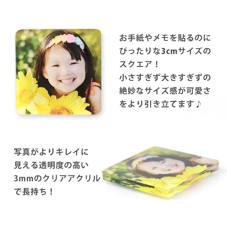 フォトマグネット アクリル製 正方形 4個セット 3cm×3cm アンシャンテラボ / オリジナル商品 卒業 卒団 記念品 アクリル 写真 思い出 アルバム おしゃれ 母の日 敬老の日 記念 お祝い 思い出 出産祝い 入学祝 子供 こども 子ども 孫 親 イラスト 【ゆうパケット対応】