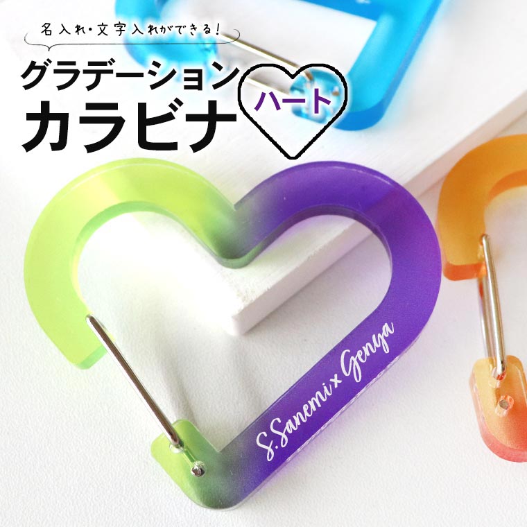 アクリル製 グラデーションカラビナ ハート 66×55mm 厚さ5mm 選べるカラー アンシャンテラボ / 名入れ 文字入れ アクリル カラビナ 推し活 推し事 推し キーホルダー グラデーション オリジナル オーダーメイド お揃い 記念品 丸 円【無料ギフトボックス付】【ゆうパケット対応】