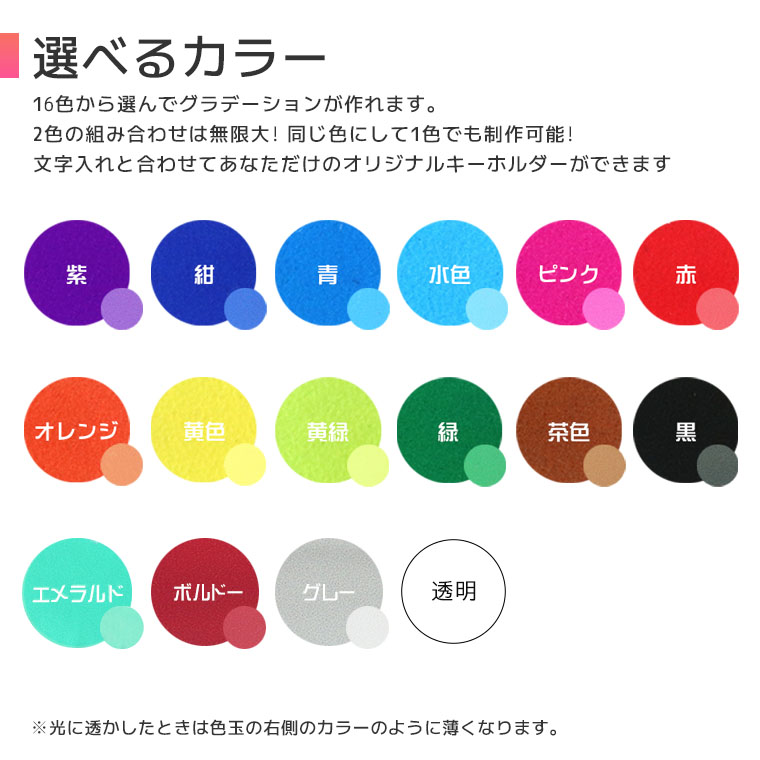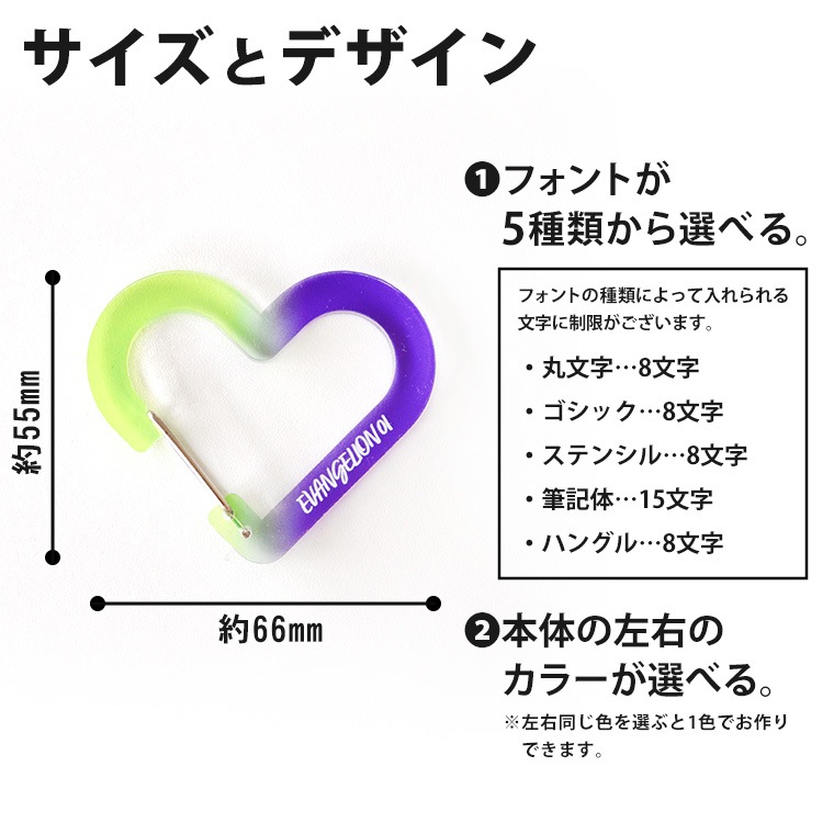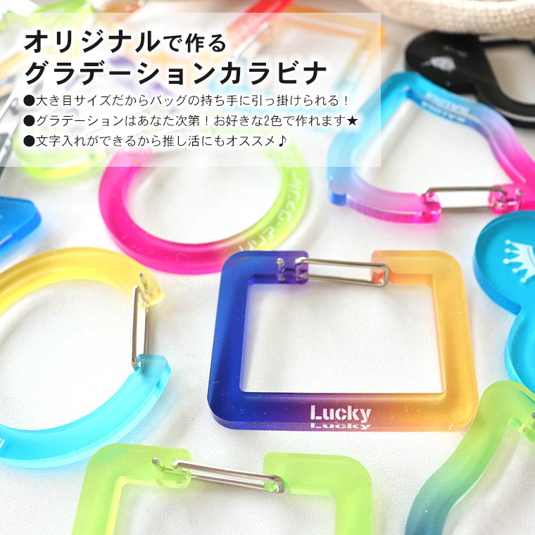 | 商品について | 左右で色が選べるグラデーションカラビナ。 名入れ・文字入れもできるから推し活にもオススメ♪ |