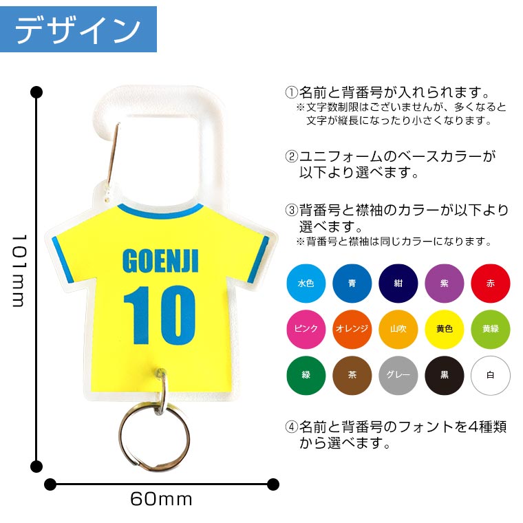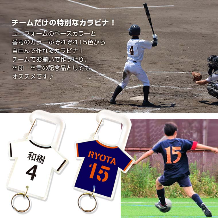 | 商品について | カスタマイズしたユニフォームデザインで作れるカラビナ! 卒団・卒業の記念品としてもオススメ♪ |