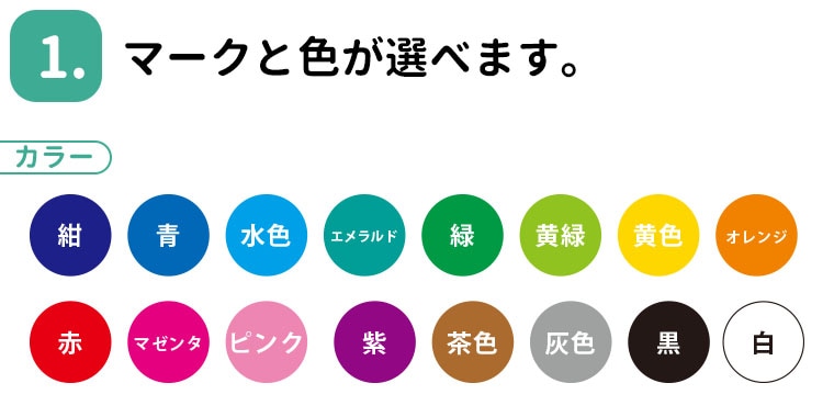 | オーダー内容 | ①(1)に入れるマーク番号 ②(2)に入れるマーク番号 ③(3)に入れるマーク番号 ※上記はご注文手続き時にご記入ください。 |