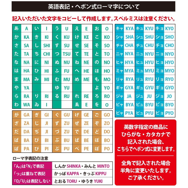 ※ご記入漏れがある場合、製作を開始できず発送が遅れますのでご注意ください。
