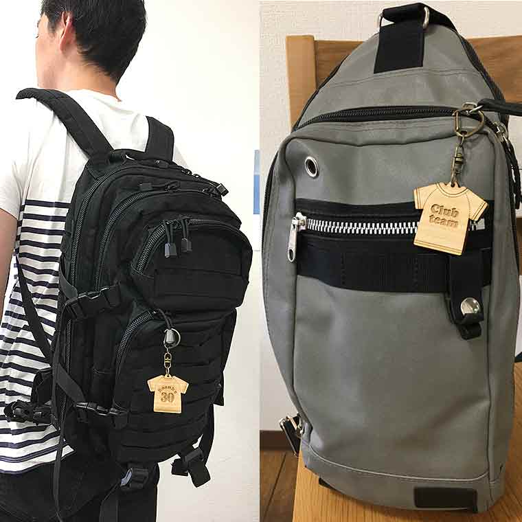 豊富なデザインから選べる木製のTシャツ型キーホルダー。 部活やサークルに合わせてお選びいただけます。 グループ名や名前を表裏に入れられ、オリジナル性の高いキーホルダーです。 バッグチャームや携帯のストラップとしても使えます。 自分の好きな選手の背番号を入れたり、クラブやチームで揃えても。 |
