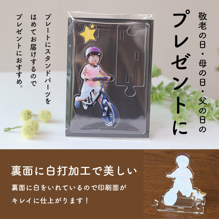 アクリルスタンド 人物 子供 名入れプレート付き 厚さ3mm アンシャンテラボ / オリジナル フォトスタンド アクリル製 クリアアクリル 写真 プリント アクスタ 母の日 父の日 敬老の日 七五三 出産祝い 誕生日 入学 卒業 プレゼント おしゃれ かわいい【ゆうパケット対応】