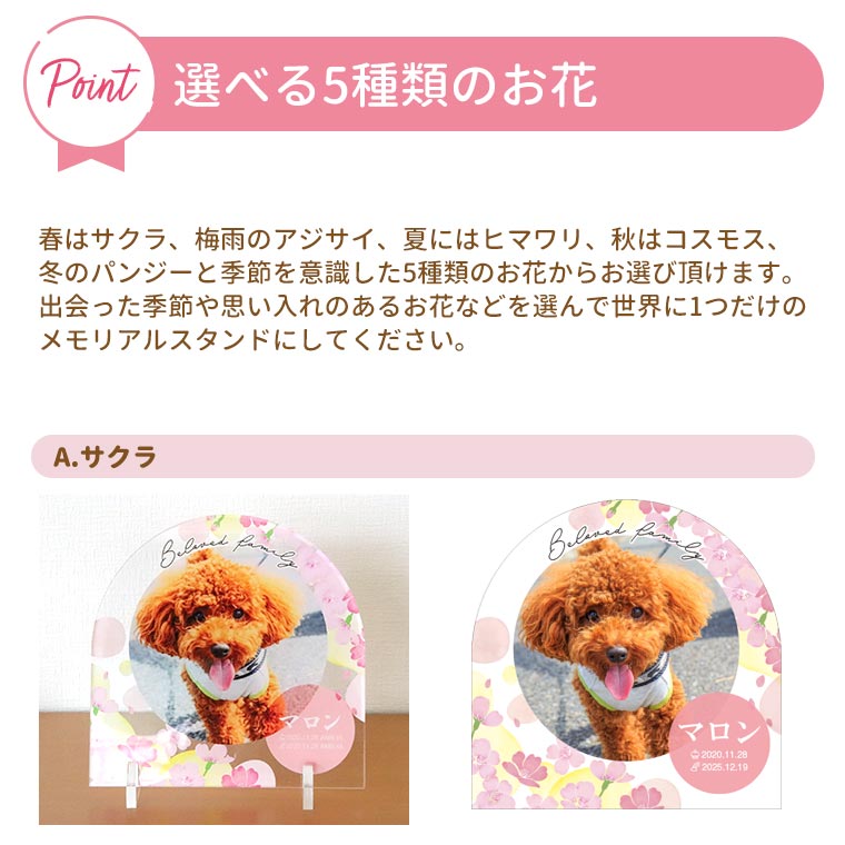 フラワーメモリアルプレート 14cm×14cm 厚さ5mm 全5種類 アンシャンテラボ / アクスタ ペット 位牌 遺影 愛犬 愛猫 イヌ いぬ ねこ ネコ メモリアルグッズ 家族 仏具 ペット供養 手元供養 フォトスタンド 可愛い かわいい 【宅配便】