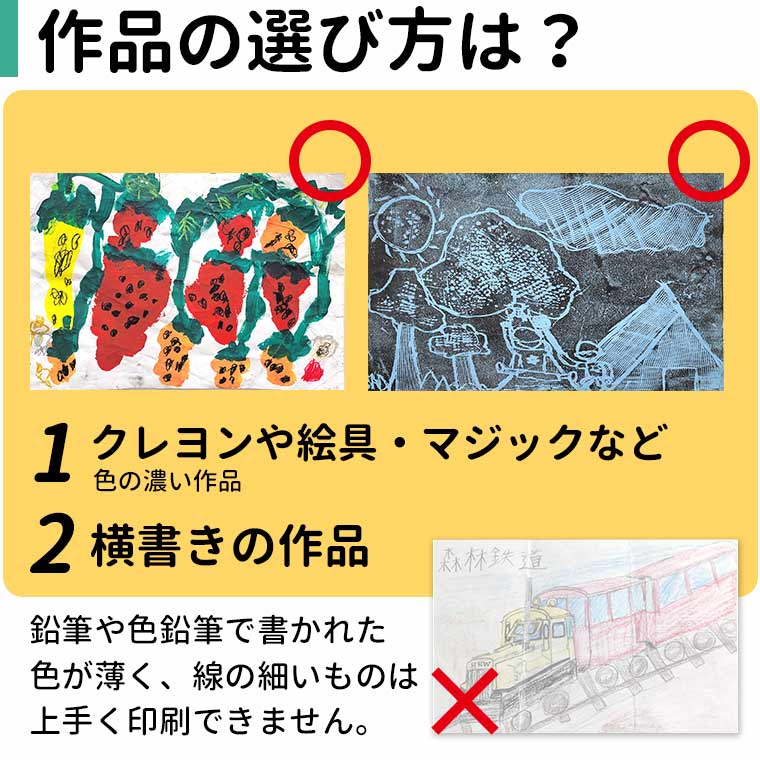 | 商品について | お子さまの作品でオシャレなミニトートが作れちゃう! わが子のアートを日常に取り入れませんか? |