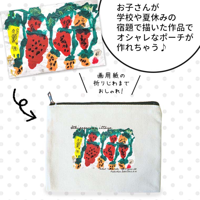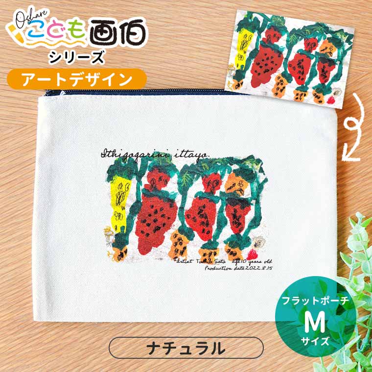 オシャレこども画伯 アートデザイン フラットポーチ ナチュラル Mサイズ アンシャンテラボ / オリジナル商品 キャンバス 綿 ポーチ オリジナルポーチ イラスト 子どもの絵 夏休みの絵 プレゼント【無料メッセージシール付き】【ゆうパケット対応】