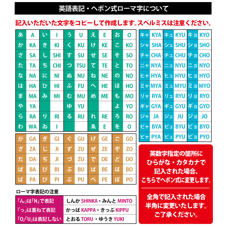 ※ご記入漏れがある場合、製作を開始できず発送が遅れますのでご注意ください。