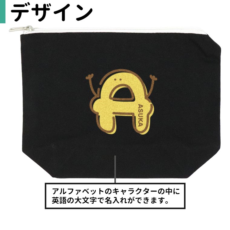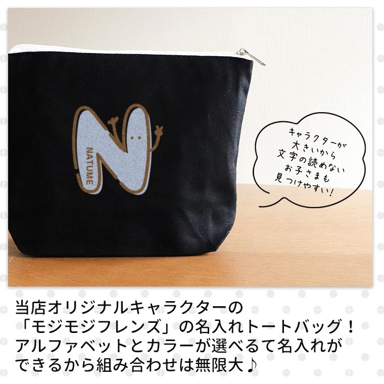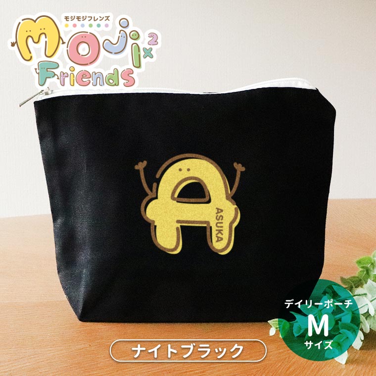 モジモジフレンズ デイリーポーチ ナイトブラック Mサイズ アンシャンテラボ / ポーチ オリジナル 名入れ 文字入れ 子ども 名前 こども 子供 アルファベット キャラクター カラフル 入園準備 入学準備 マーク 目印【無料メッセージシール付き】【ゆうパケット対応】