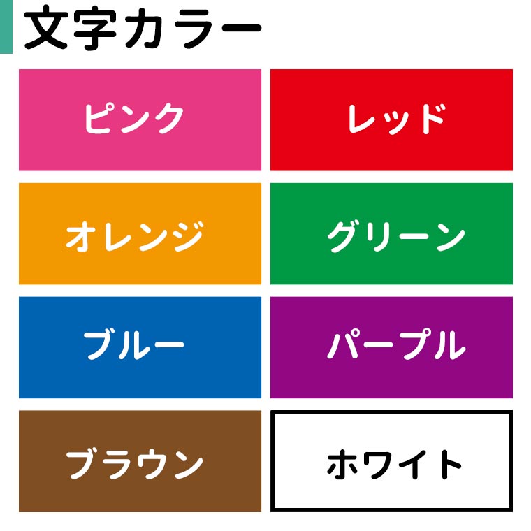 | オーダー内容 | ①文字のカラー ②印字する数字またはアルファベット(上限2文字) ③印字する名前(英字) ※上記はご注文手続き時にご記入ください。 |
