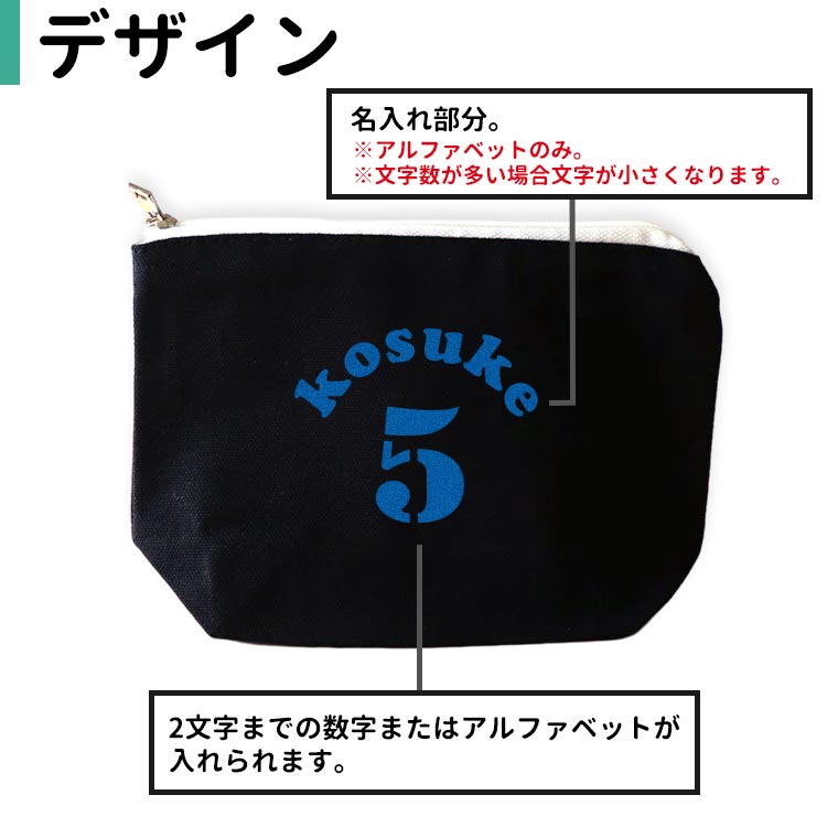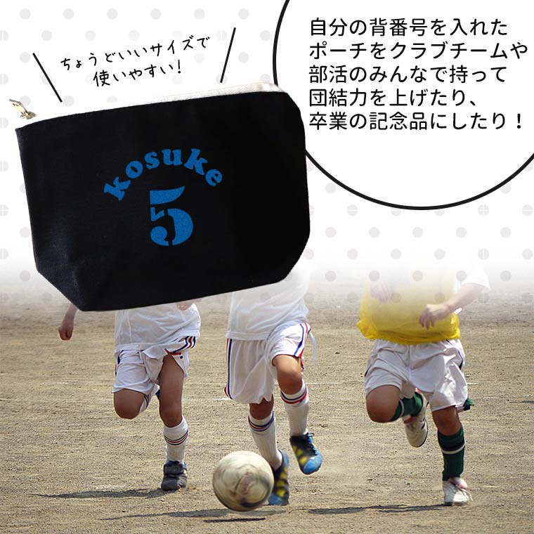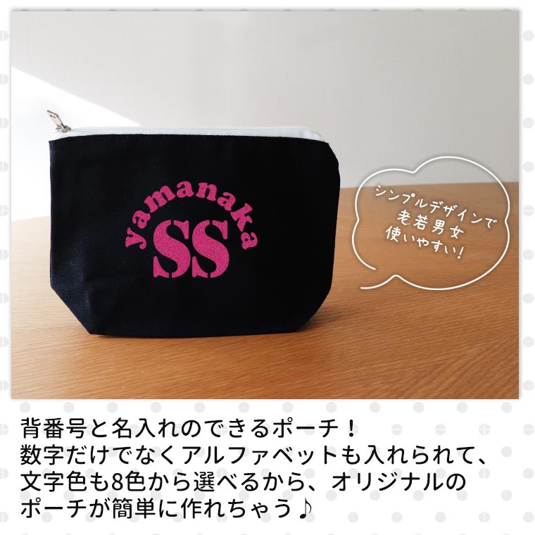 | 商品について | 背番号と名前が入れられるシンプルなポーチ。 背番号だけでなくアルファベットも入れられる♪ |