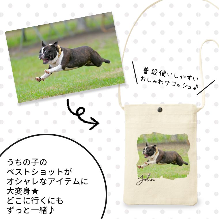 | 商品名 | ≪うちの子プリントシリーズ≫ オシャレフォトフロントポケットミニサコッシュ |