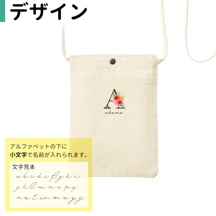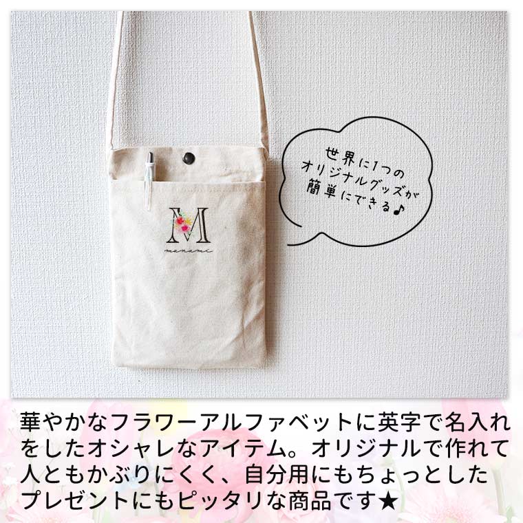 フラワーアルファベット フロントポケットミニサコッシュ ナチュラルカラー アンシャンテラボ / オリジナル サコッシュ 名入れ アルファベット イニシャル 母の日 プレゼント フラワー オシャレ 可愛い お揃い 【無料メッセージシール付き】【ゆうパケット対応】