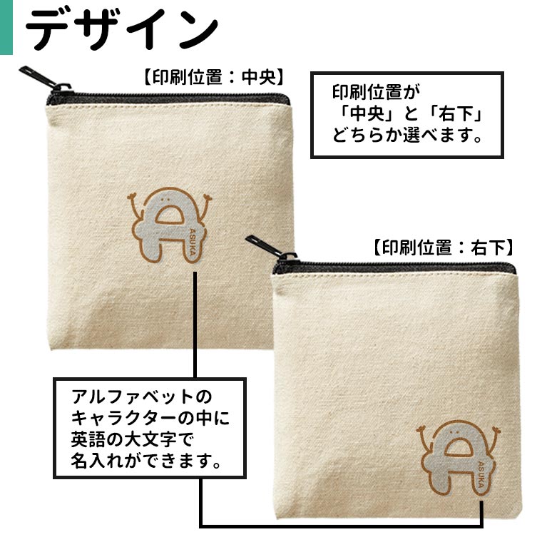 モジモジフレンズ スクエアスクエアフラットポーチ ナチュラル アンシャンテラボ / ポーチ 名入れ 文字入れ 子ども 名前 こども 子供 アルファベット キャラクター カラフル 入園準備 入学準備 マーク 目印【無料メッセージシール付き】【ゆうパケット対応】