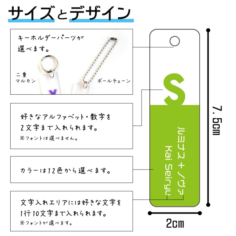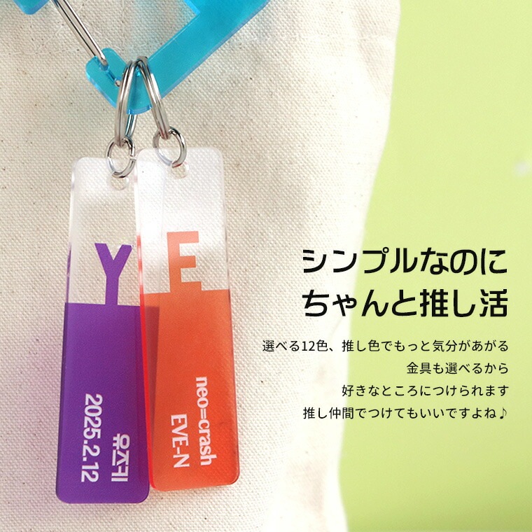 アクリル製 推しカラーキーホルダー スティック型 大 20×75mm 選べるカラー アンシャンテラボ / アルファベット 数字 イニシャル 名入れ 文字入れ 推しカプ 概念 アイドル メンカラ メンバーカラー 推し活 推し事 お揃い オーダーメイド【ゆうパケット対応】