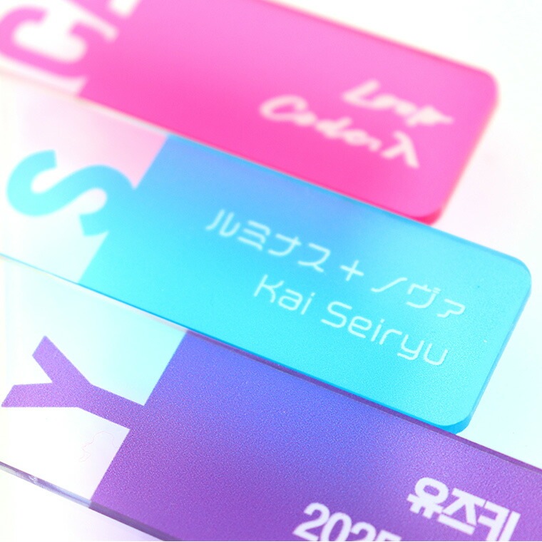 | 商品について | 人気の小さめ推しキーホルダーに、大きめサイズが新登場。 透明アクリルに推し色が透けてとてもきれい。 アルファベット・数字で作るキーホルダー! 推しのオシャレな概念キーホルダーが簡単に作れちゃう♪ |