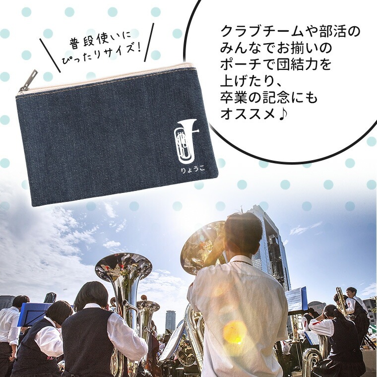 フラットポーチ インディゴ Sサイズ 吹奏楽 オリジナルチームグッズ アンシャンテラボ / 楽器 卒業 卒部 卒団 引退 記念品 ノベルティ 吹奏楽部 グッズ 部活 名入れ 先輩 プレゼント 学校【無料メッセージシール付き】【ゆうパケット対応】