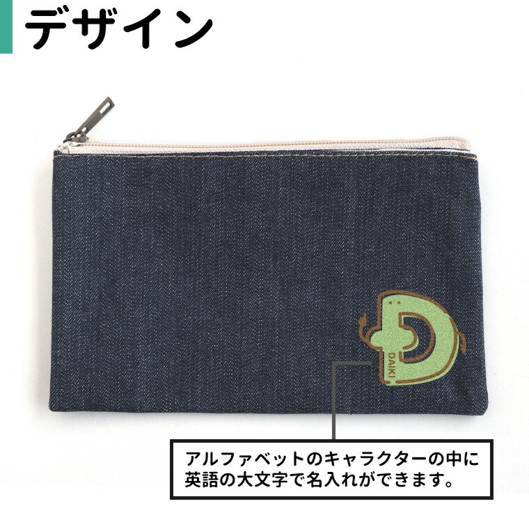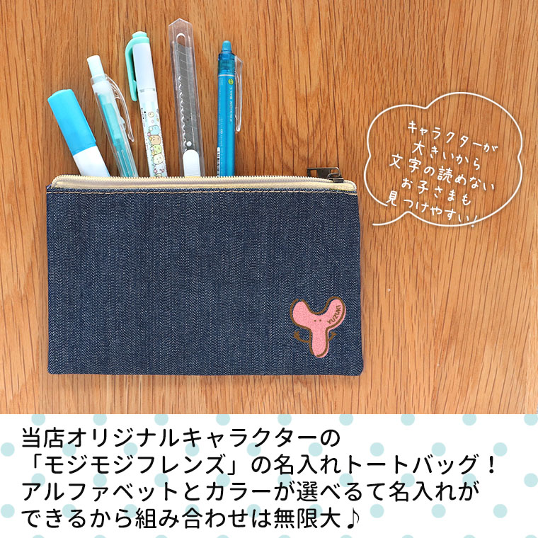 モジモジフレンズ フラットポーチ インディゴ Sサイズ アンシャンテラボ / オリジナル商品 ポーチ 名入れ 文字入れ 子ども 名前 こども 子供 アルファベット キャラクター カラフル 入園準備 入学準備 マーク 目印【無料メッセージシール付き】【ゆうパケット対応】