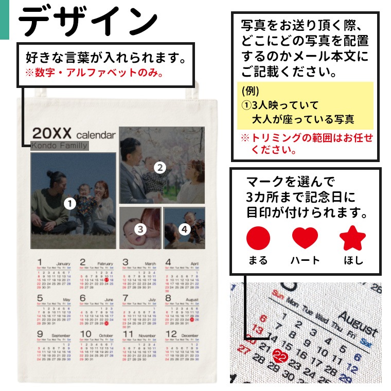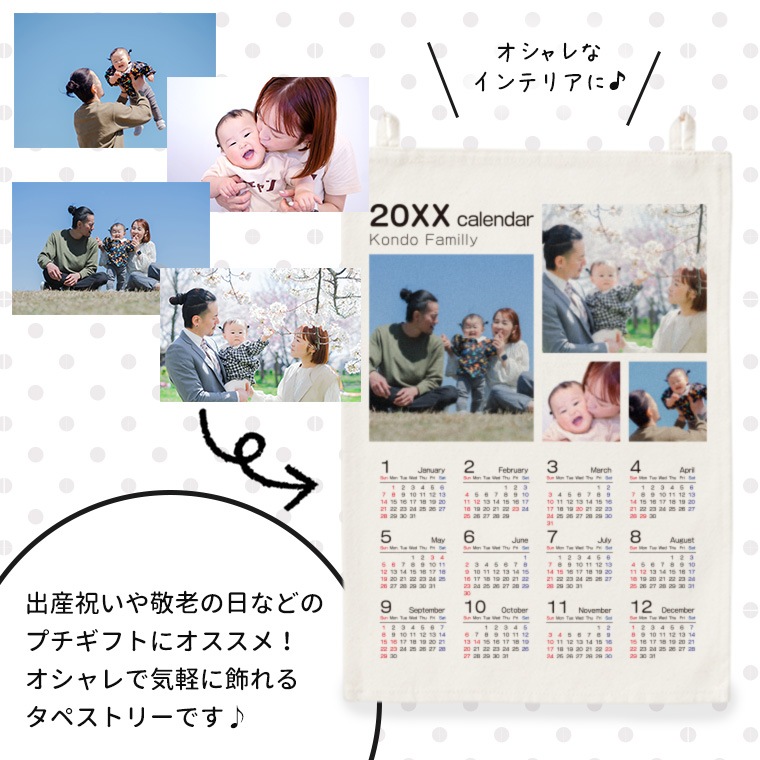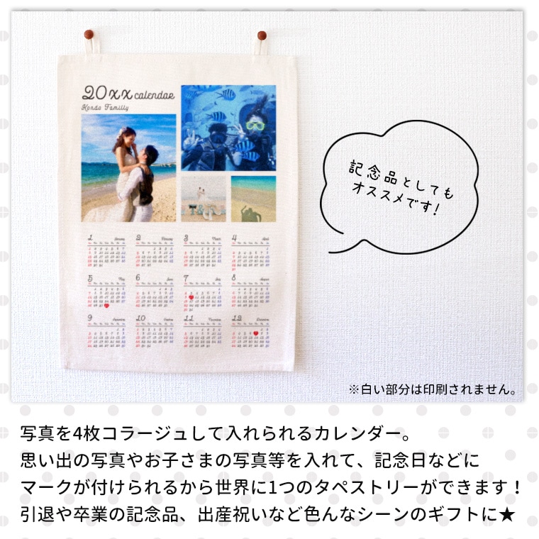 フォトカレンダータペストリー A4 コラージュ アンシャンテラボ / カレンダー 1年 インテリア オリジナル 写真 印刷 旅行 家族 兄妹 子供 父の日 母の日 敬老の日 出産祝い プチギフト オリジナルグッズ 名入れ【無料メッセージシール付き】【ゆうパケット対応】