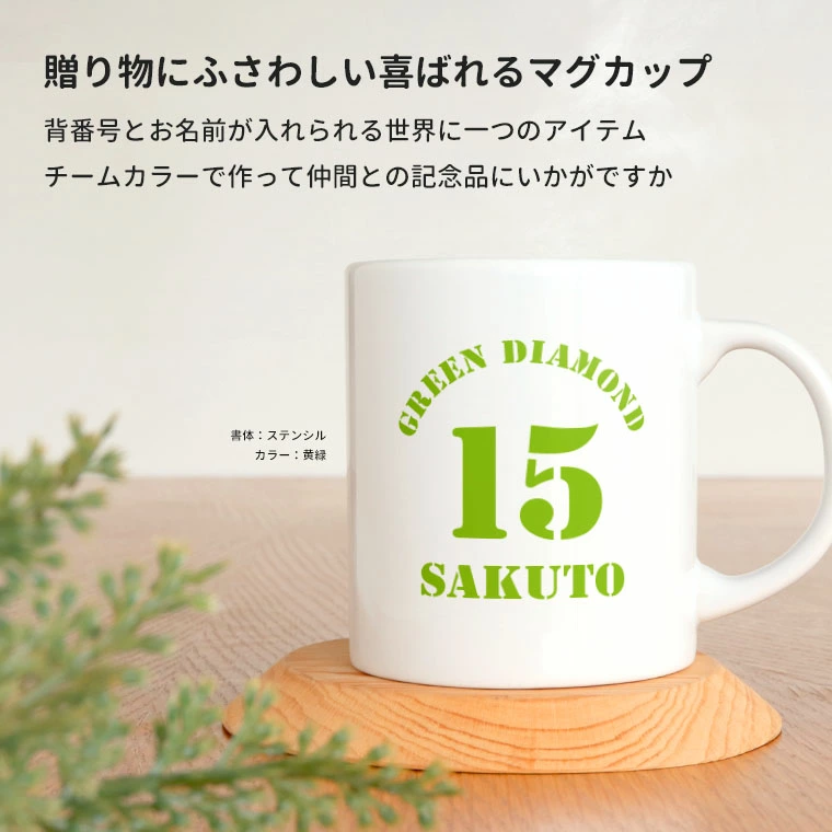 思い出の背番号が入ったマグカップは、見るたびにチームで過ごした時間を思い出させてくれます。