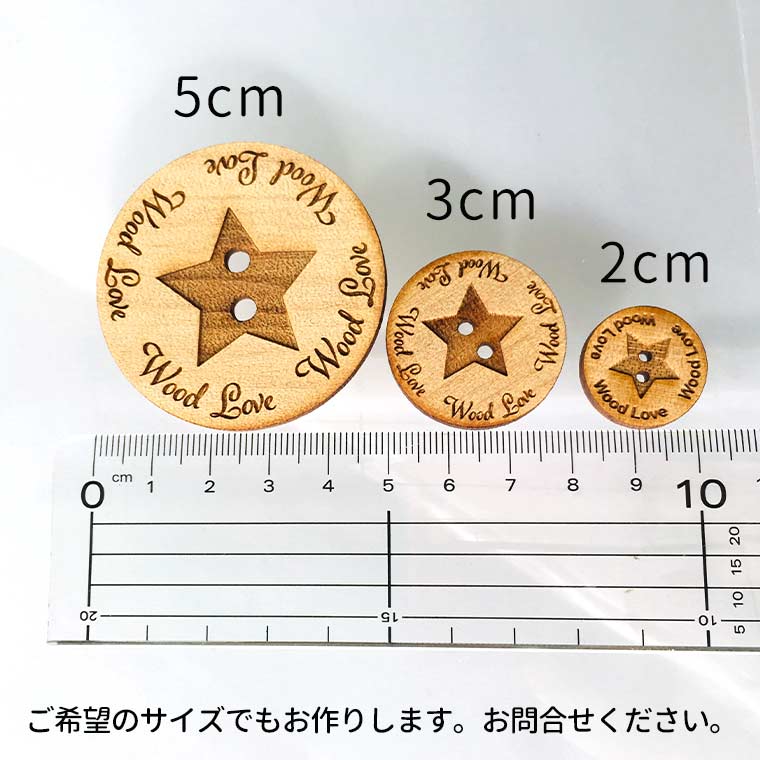 | 商品について | アガチス材を使用した、ぬくもりのある可愛いウッドボタンです。 お洋服に使用したり、かばんや帽子のワンポイントとして! |