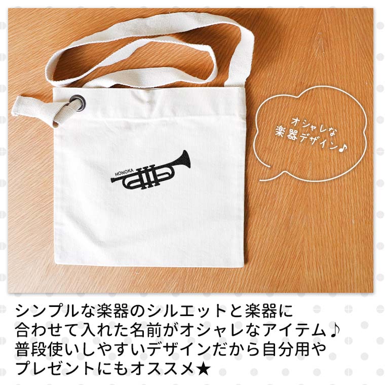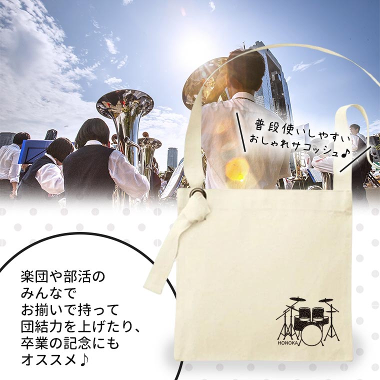 スクエアサコッシュ ナチュラル 吹奏楽 オリジナルチームグッズ アンシャンテラボ / 楽器 卒業 卒団 記念品 ノベルティ 吹奏楽部 部活 フルート クラリネット ホルン ドラム トランペット 引退 先輩 プレゼント【無料メッセージシール付き】【ゆうパケット対応】