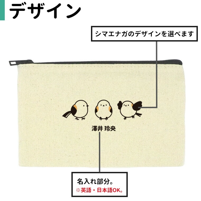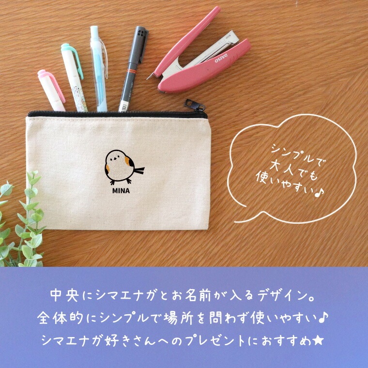 シマエナガ フラットポーチ ナチュラル Sサイズ アンシャンテラボ / オリジナル商品 オリジナルポーチ ポーチ 名入れ 鳥 野鳥 しまえなが かわいい 団子 入園準備 入園祝い プレゼント 可愛い 【無料メッセージシール付き】【ゆうパケット対応】