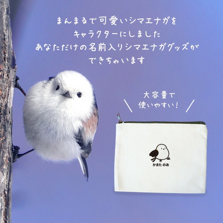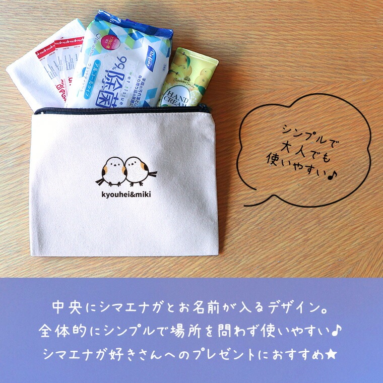 フラットポーチ ナチュラル Mサイズ シマエナガシリーズ アンシャンテラボ / オリジナルポーチ ポーチ 名入れ 鳥 野鳥 しまえなが かわいい 団子 入園準備 入園祝い プレゼント 可愛い 【無料メッセージシール付き】【ゆうパケット対応】
